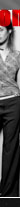of red and black, with wide fabric belts pinned in place. Asymmetrical and minimalist,